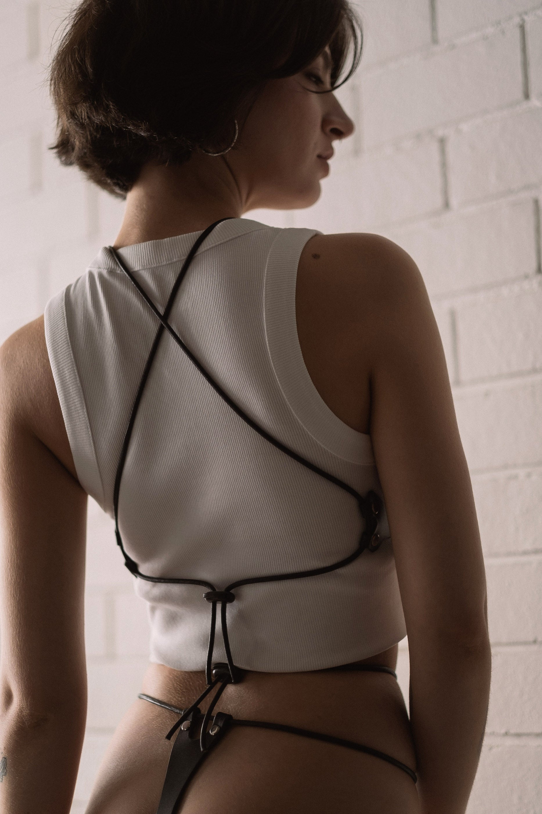 Crafted for versatility and comfort, the adjustable leather cord gracefully crisscrosses at the back, allowing a customized fit that moves seamlessly with your body. Whether layered or worn alone, Angelica elevates any look with quiet confidence.