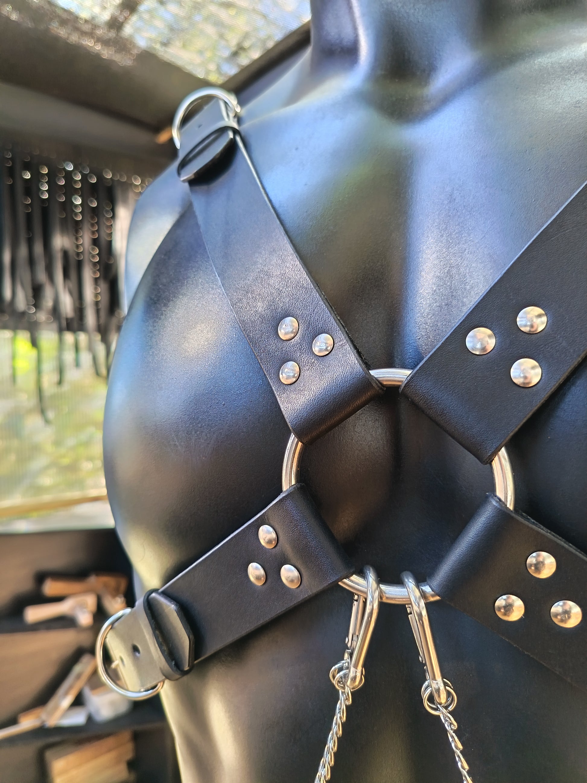 Handcrafted from soft yet durable bovine leather, each harness is made to order with meticulous care and attention to detail. Fully customizable to your preferences, this piece offers a truly bespoke experience—tailored to fit, feel, and express exactly who you are.
